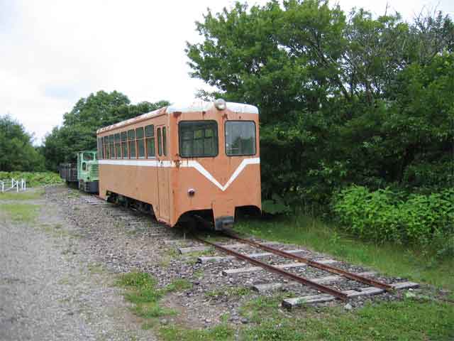 駅舎のすぐ裏には、昭和40年代まで活躍した村営軌道の車両が残されていました。