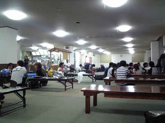 この大広間は夜中になると寝る場所が無いくらい人がいましたわ。なぜか?フェリー乗り場から200メートルぐらいしか離れていないので、翌日のフェリーに乗船する人が宿がわりにするのです。