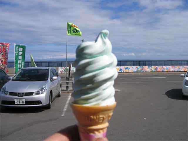 ついでに、羅臼の海洋深層水で作ったソフトクリームもいただきました。ほんのり塩味が効いていてこれも美味しかったですね。