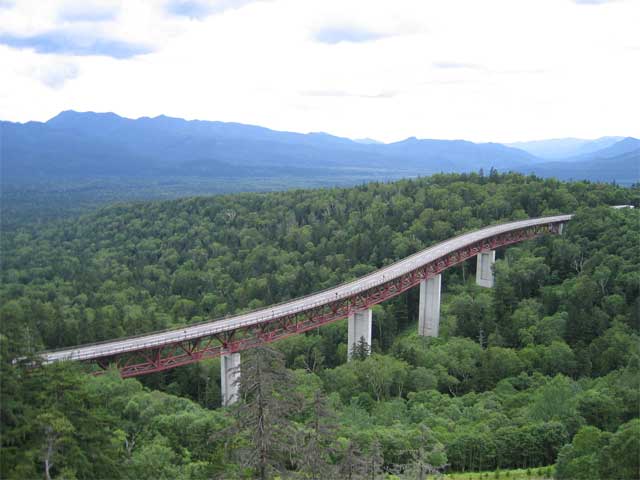 糠平温泉に宿泊する予定でしたが、士幌線の軌道を辿りながら下って行くと上士幌町に到着。さらに、がんばって足寄まで走り、野中温泉YHに宿泊となりました。