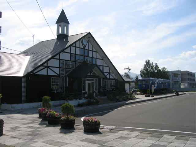 白樺並木の真っ直ぐな道を進むと、かつての士幌線の終点、十勝三股駅がある。
