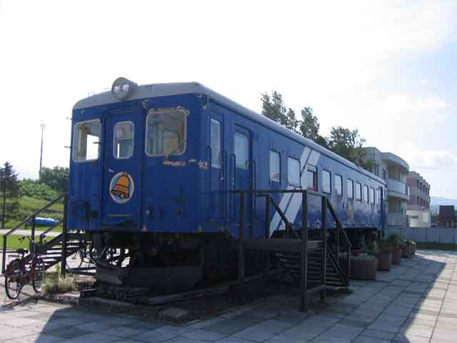 ここは列車の中に宿泊できます。青い客車が300円で隣接する駅長室跡が500円、町営なので安いそうです。