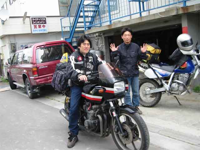 | 稚内市のライダーハウス「みどり湯」に泊まる。ライダー以外にも、JRで旅する人、車で旅する人が来て、夜は宴会で盛り上がる。居心地が良くて2泊もしてしまった。 ちなみに「みどり湯」は銭湯。だから宿泊には良いね。 |